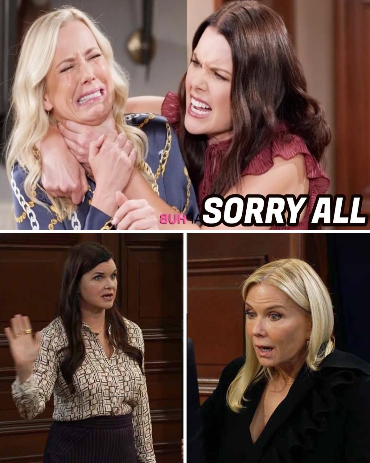 Brooke finds herself painfully torn, 𝒄𝒂𝓊𝓰𝒉𝓉 between her husband Ridge’s loyalty and her sister Katie’s desperate bid for validation. Her forced siding with Ridge creates a divisive atmosphere, as the wedge driven between the sisters grows with each antagonistic exchange and veiled accusation.