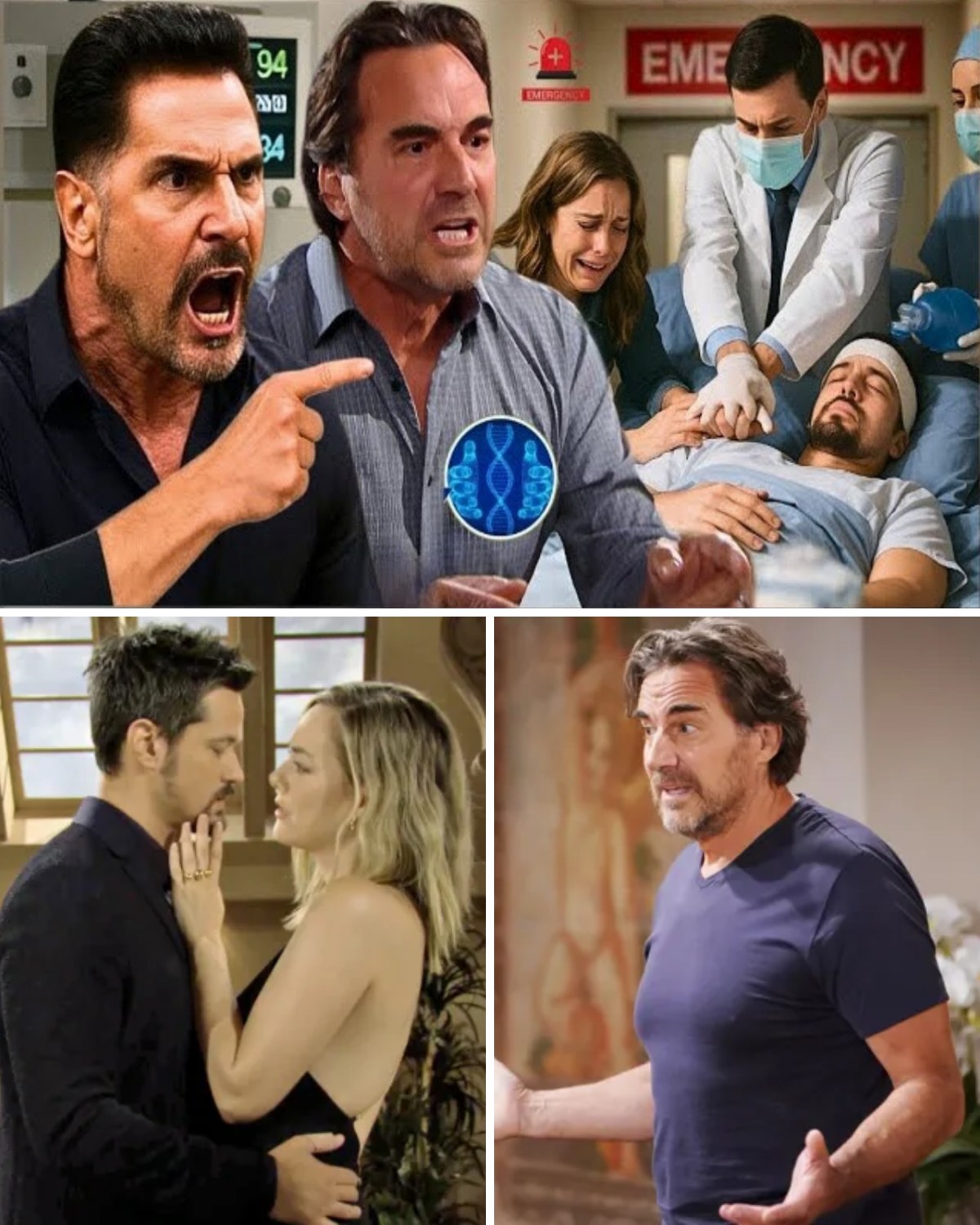 A dramatic confrontation erupted when Thomas, sensing something amiss, demanded the truth from Taylor and Ridge. The fragile peace shattered as Taylor revealed the secret openly. The emotional impact triggered a critical health emergency, forcing doctors to intervene urgently and move Thomas back into intensive care once again.